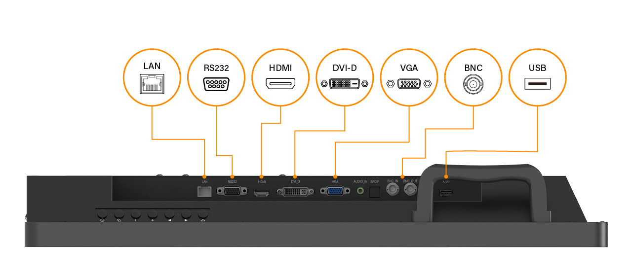 With support for 400 x 200 mm VESA mounts, the LCD display enables versatile installation options, including wall and ceiling mounts, enhancing space utilization and optimizing viewing angles for diverse surveillance setups.