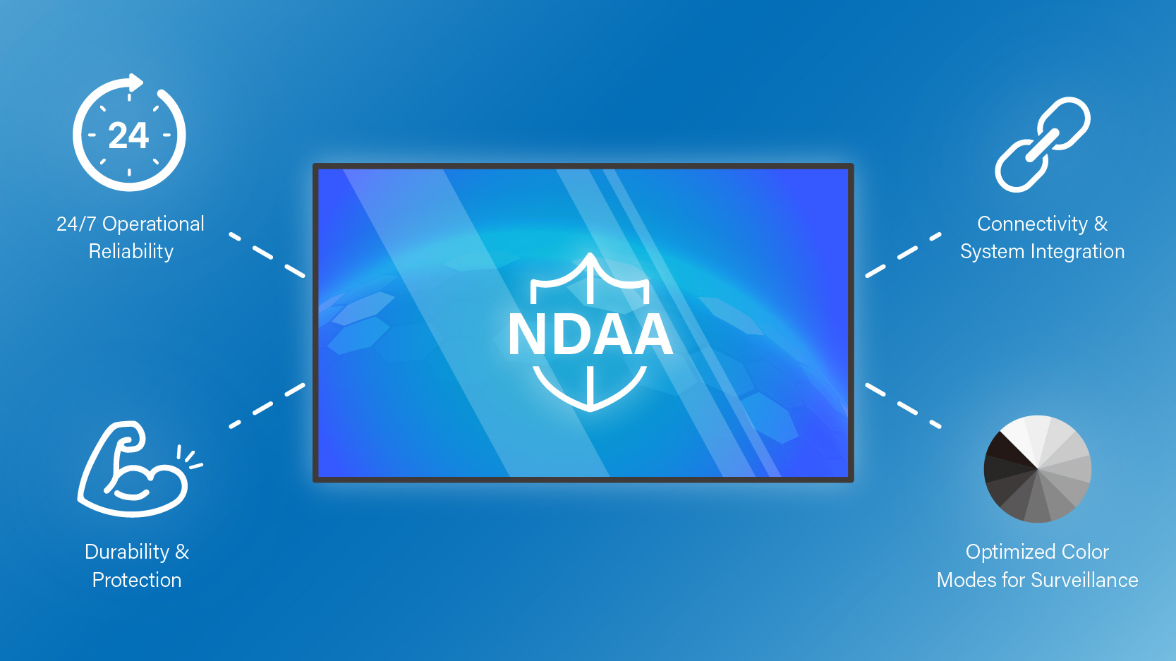 Para evitar estos riesgos, es fundamental elegir monitores compatibles con la NDAA. Las soluciones de AG Neovo están diseñadas para cumplir con estas normas, ofreciendo seguridad y fiabilidad a largo plazo.