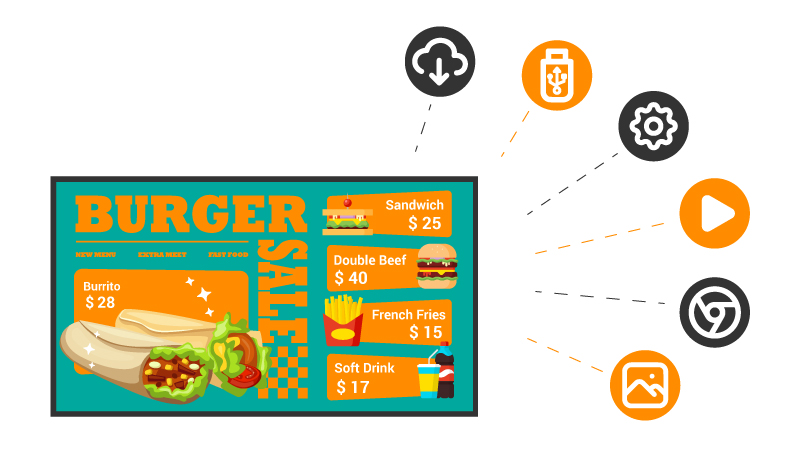 Many newer commercial displays now come with built-in support for popular cloud CMS platforms. These all-in-one screens include processing and storage internally, so there’s no need for an external media player. They’re easy to install, reduce cable clutter, and are especially suited to smaller restaurants or spaces with limited IT infrastructure.