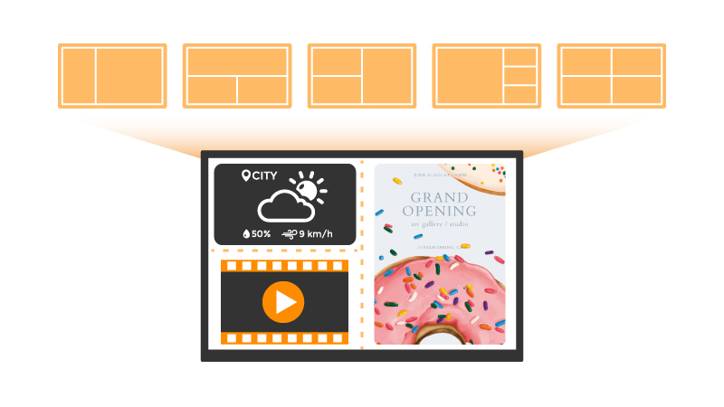 A good CMS lets you divide your screen into distinct zones. For instance, you might display your core menu in one section, highlight special offers in another, and use a third zone for customer messaging or promotional videos. This layered content approach helps you communicate more information without overwhelming the viewer.