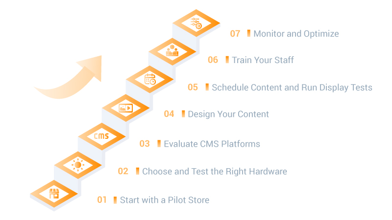 Launch your first digital menu board in one location. This allows you to test screen placement, brightness, and staff/customer reactions before wider rollout.