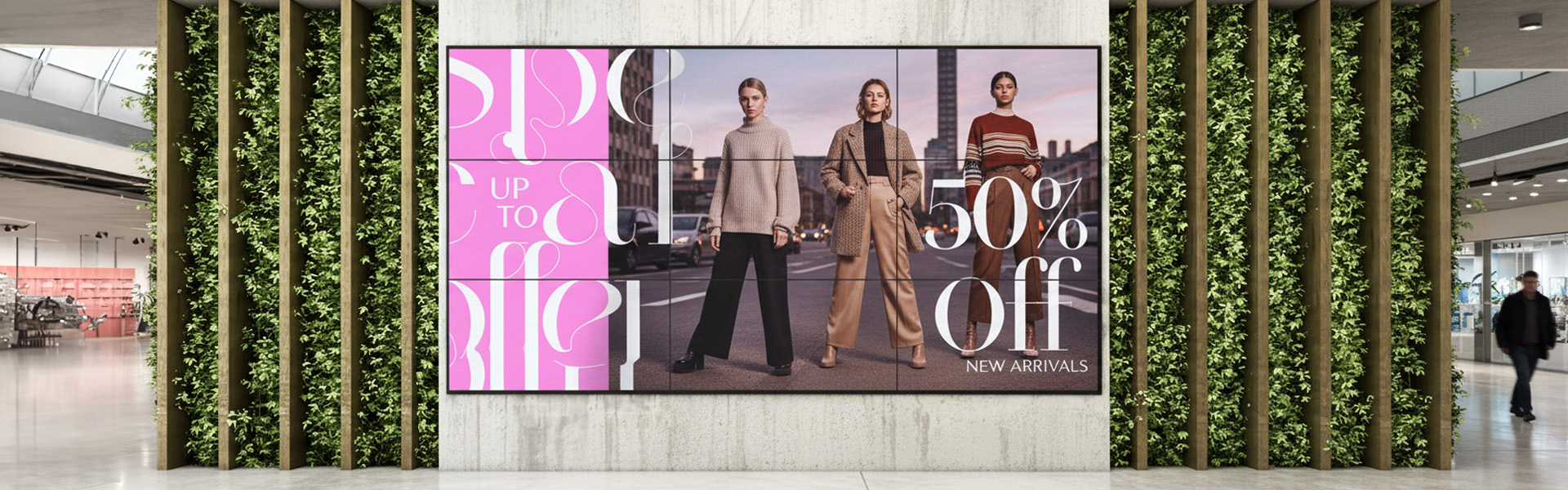 I nostri display supportano sia le orientazioni orizzontali che verticali, consentendoti anche di implementare configurazioni artistiche creative per video wall.