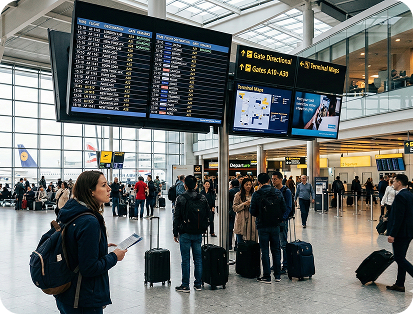 İstasyon PIDS’leri, 7/24 doğru zaman çizelgeleri ve durum güncellemeleri sağlamalıdır. AG Neovo, şu ortamlarda destek sunar: