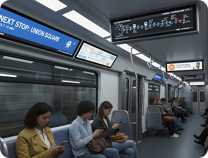 Taşıma uygulamaları, ekran platformları uzun ömürlü ve öngörülebilir olduğunda başarılı olur. Demiryolu, metro, otobüs, havaalanı ve yol kenarı altyapısında ekranlar, sıkı yasal düzenlemelere uymalı, zorlu halka açık ortamlarda dayanıklı olmalı ve kesintisiz çalışmalıdır.