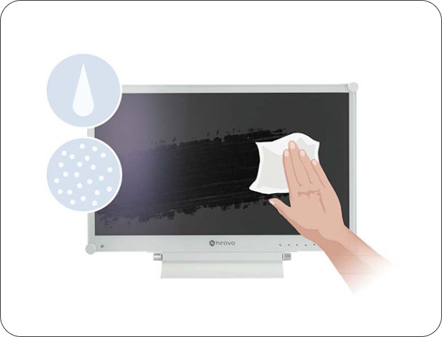 NeoV 防護光學玻璃的耐酸鹼塗層處理,確保牙科顯示器能夠承受清潔與消毒作業,並配備白色金屬外殼,不但防塵防水,更能輕易發現在牙科環境下使用所產生的汙染。