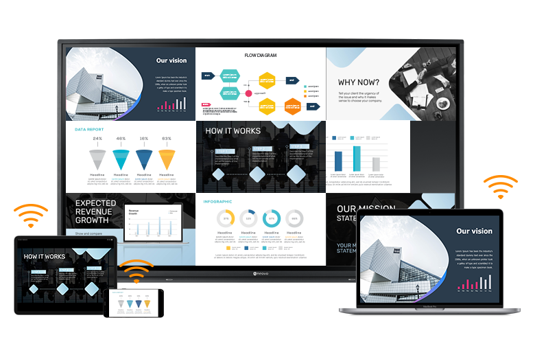 支援 AirPlay、Miracast 和 Chromecast 無線投影技術。在會議中報告時,只要與你的個人裝置連上共同 Wi-Fi,即可輕鬆投影裝置上的內容至 Meetboard 上,不需要任何一條傳輸線。